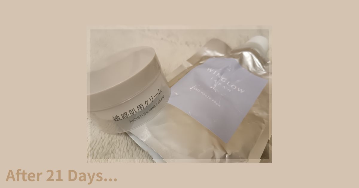 秋の訪れと共に乾燥感を感じ始めた2週目、今回の3週目では前回宣言させていただいた通りに、夜だけではなく朝のWINGLOW使用、そして写真に写っている無印良品の保湿クリームも併用してみましたの〜✨️
