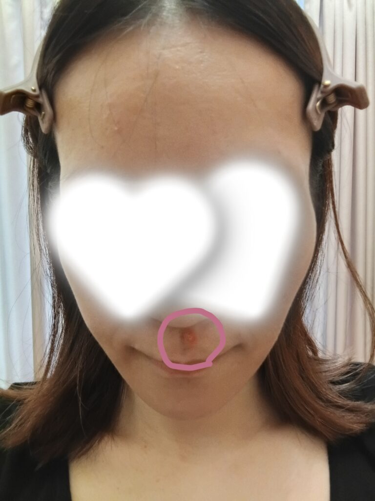 今回、爆弾級に発生した鼻の下の吹き出物が、こちら⚡️