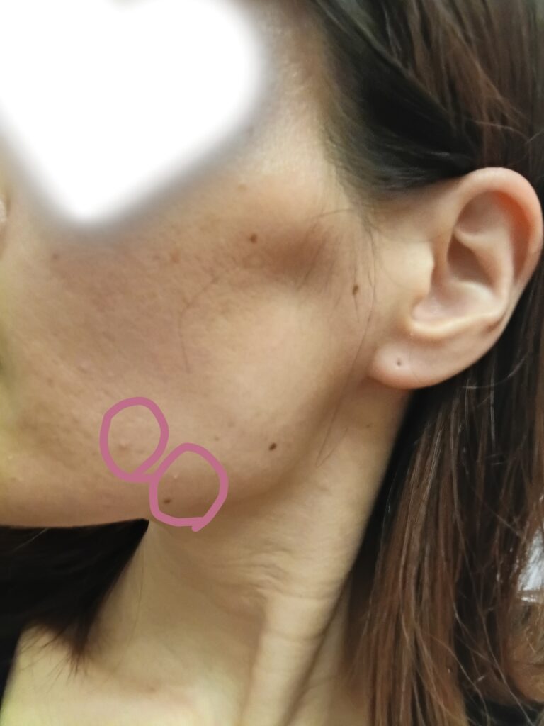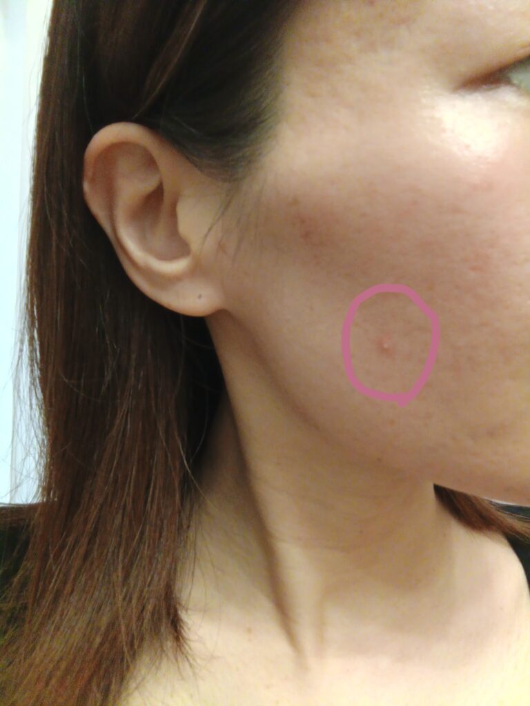 22日目に誕生した左頬の吹き出物は、まだ少し小さく残っている。