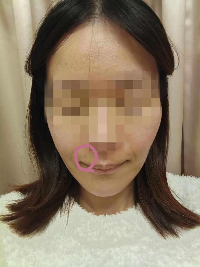 唇の右上の赤い吹き出物の立体感がなくなり赤い跡へ